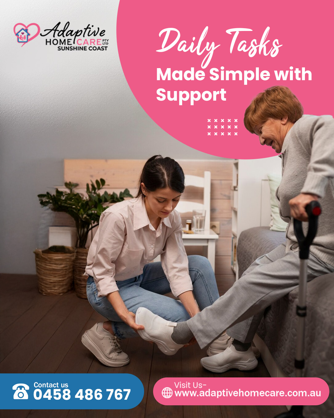 If you or a loved one is seeking daily tasks and shared living in the Sunshine Coast, Queensland, Adaptive Home Care is the ideal choice. To learn more about our services or schedule a consultation, please reach out to us at 0458486767. For further queries, you can also send an email to info@adaptivehomecare.com.au.