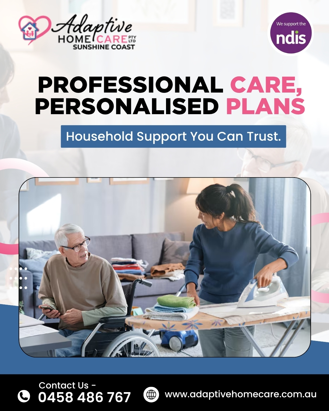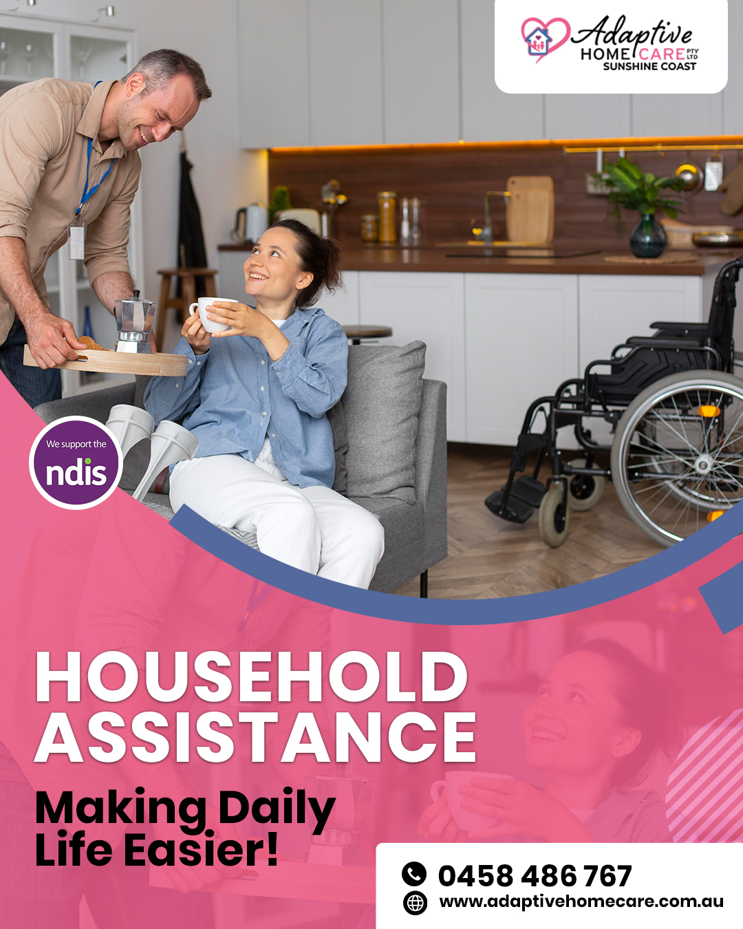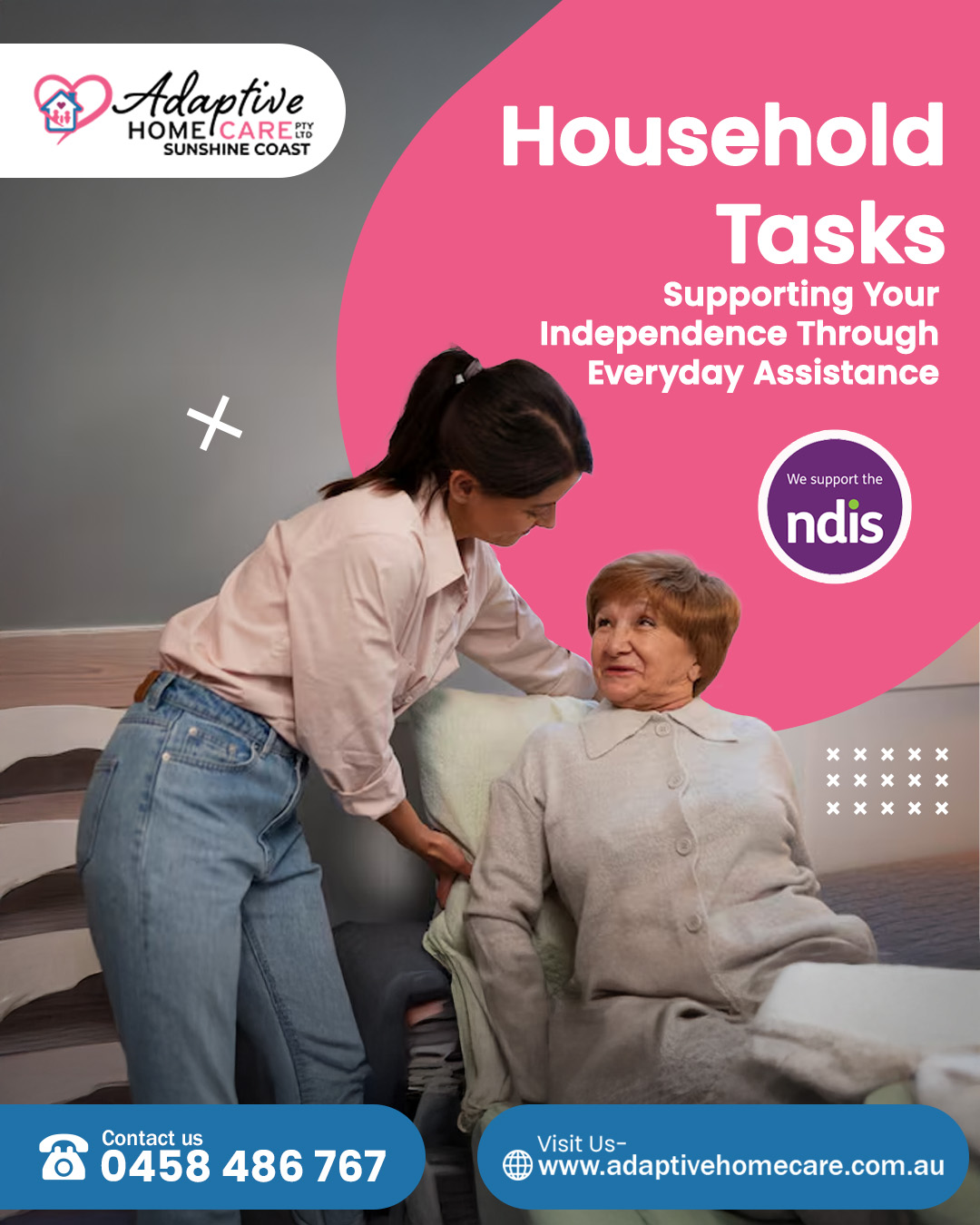 Household chores can be a daunting challenge, especially for individuals with disabilities. The National Disability Insurance Scheme (NDIS) recognises this and offers invaluable assistance in the form of household tasks support. At Adaptive Home Care,  we’re passionate about providing NDIS participants with the helping hand they need to make daily life more manageable and enjoyable with our assistance with household tasks in Sunshine Coast. Let’s delve into how our Adaptive Support can help NDIS participants with their household tasks.